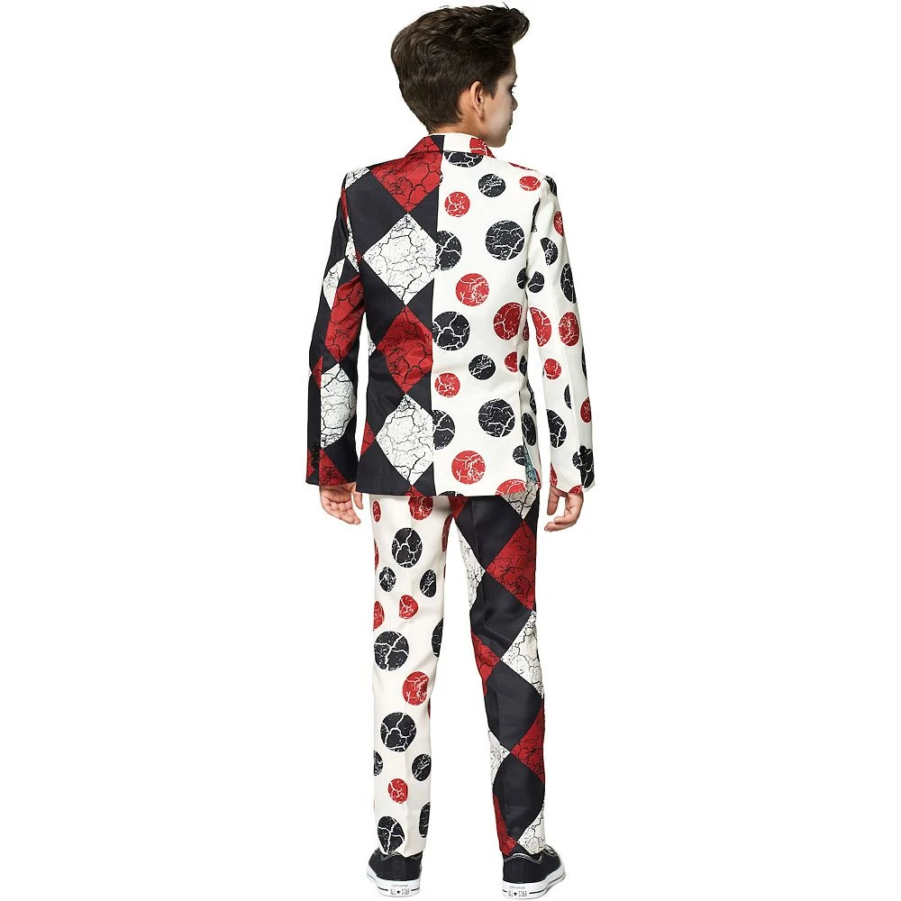 What kid doesn’t love to scares during Halloween? Let your little boy play on peoples natural fear of clowns in this scary yet stylish boy’s Suitmeister clown suit that will terrify the entire neighborhood whilst trick-or-treating.Ā The outfit consists of a jacket, pants and a safe clip-on tie. The pants have an adjustable waistband for a comfortable and stylish fit.Ā